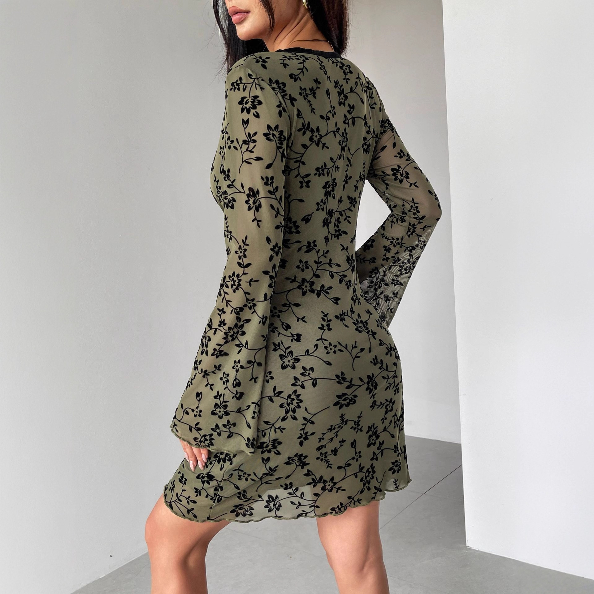 Be the first to review “Bell sleeve double layer mesh flocking large collar dress for women”