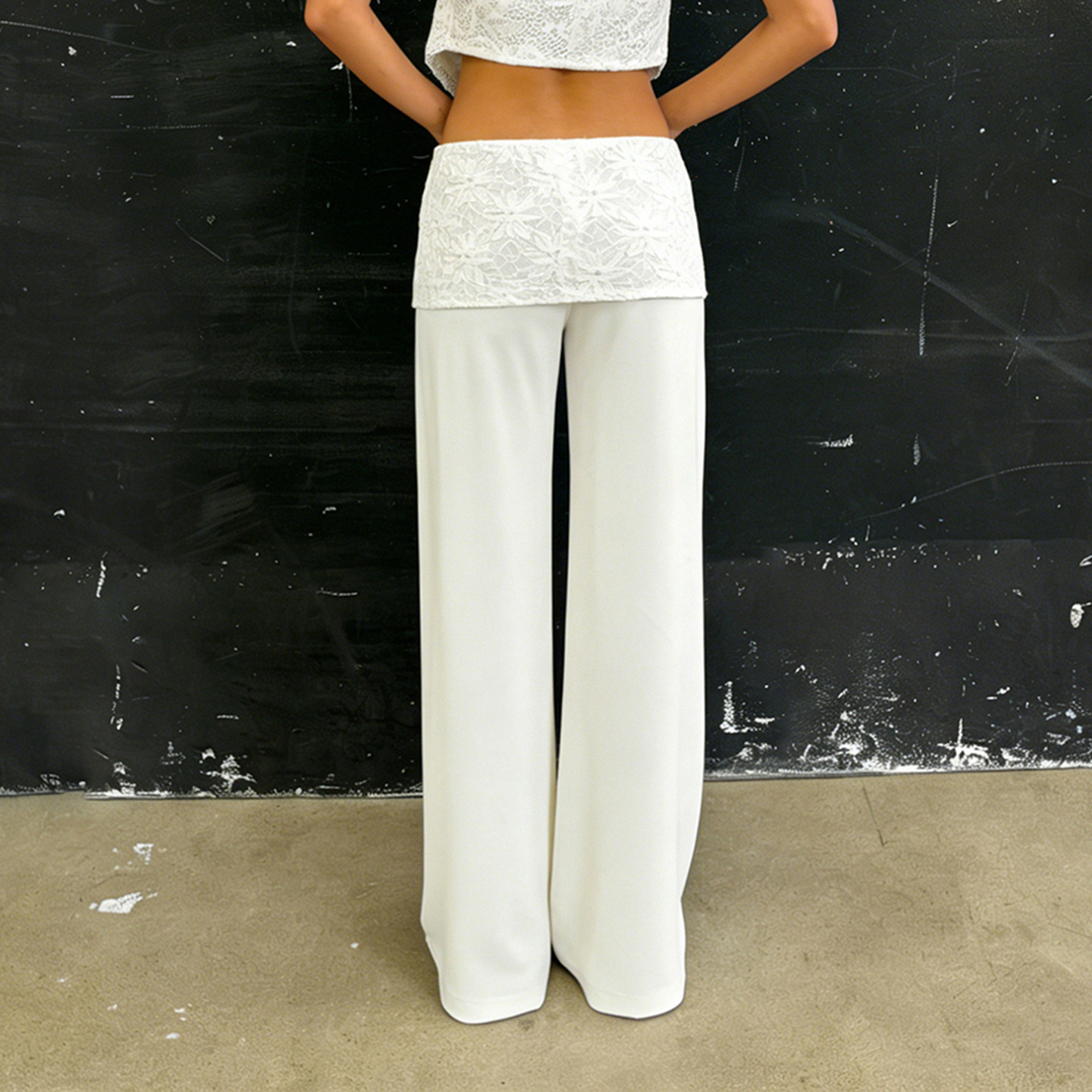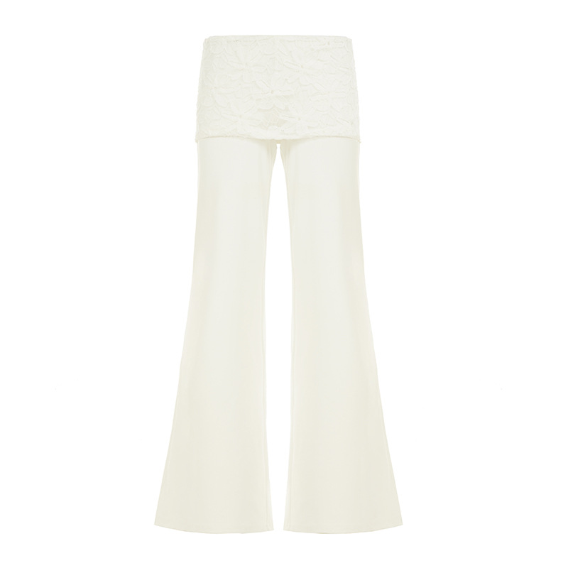 Daily casual style simple solid color waist lace splicing trousers versatile loose and lazy trousers for women