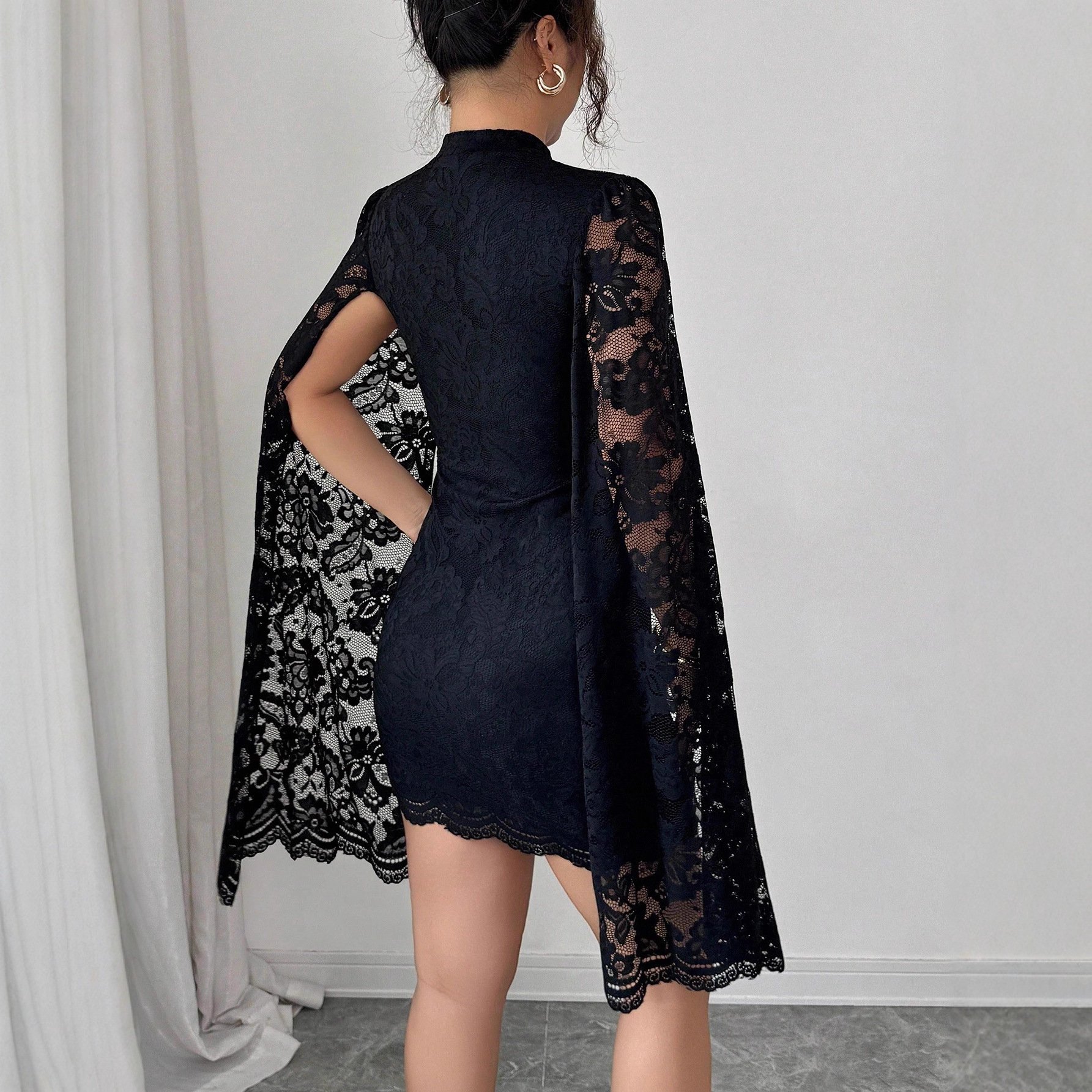 Be the first to review “Fashionable lace small stand-up collar slit long-sleeved sexy dress for women”