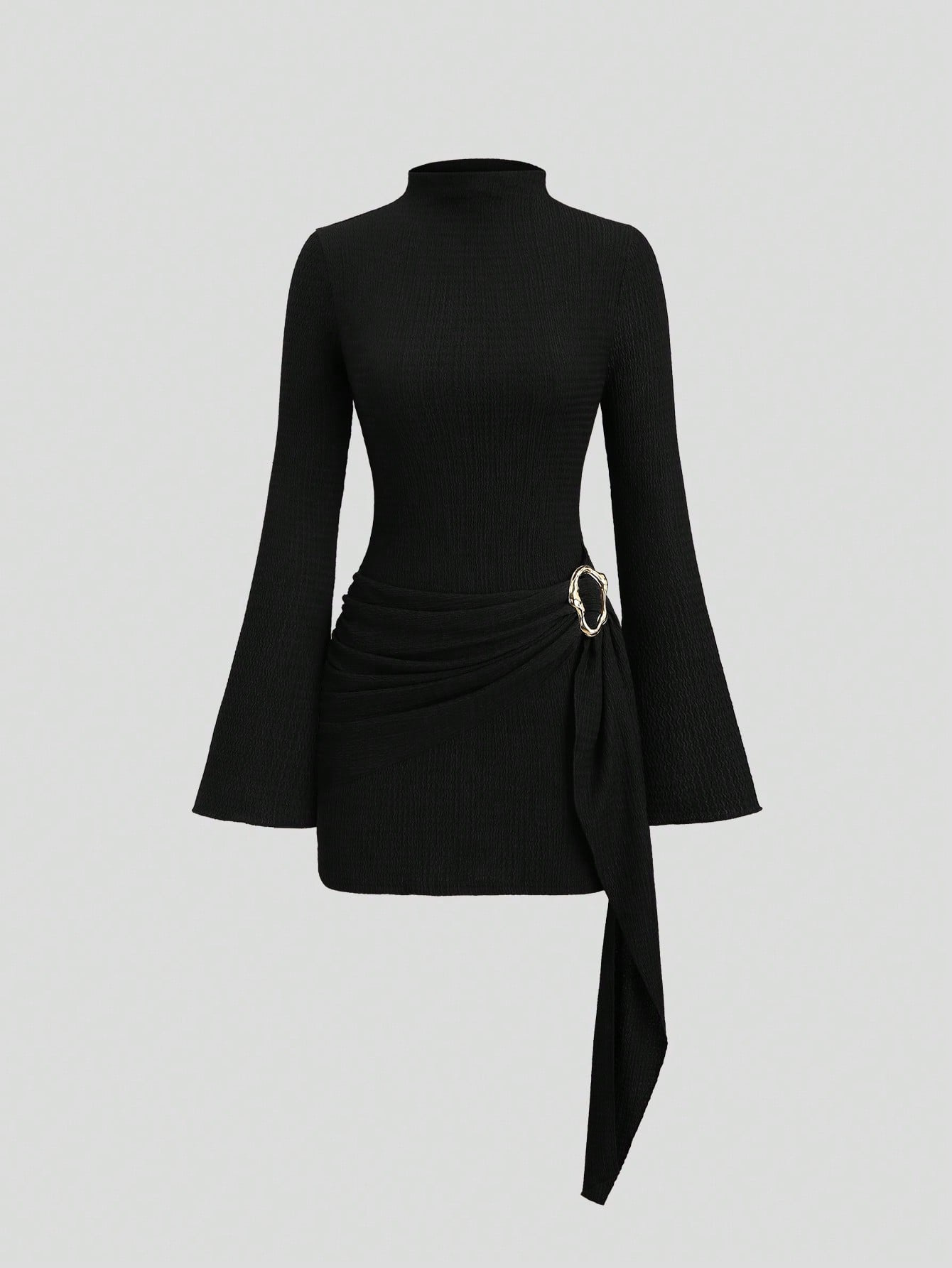 Be the first to review “Knitted textured solid color slim fit metal buckle dress”