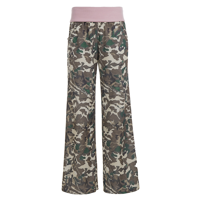 Retro cuffed camouflage print contrasting color casual sweatpants, loose, lazy and personalized street basic wide-leg trousers