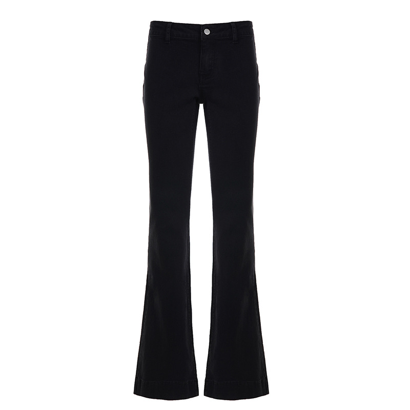 Simple solid color basic versatile slim flared jeans Everyday hot girl casual temperament commuter style trousers