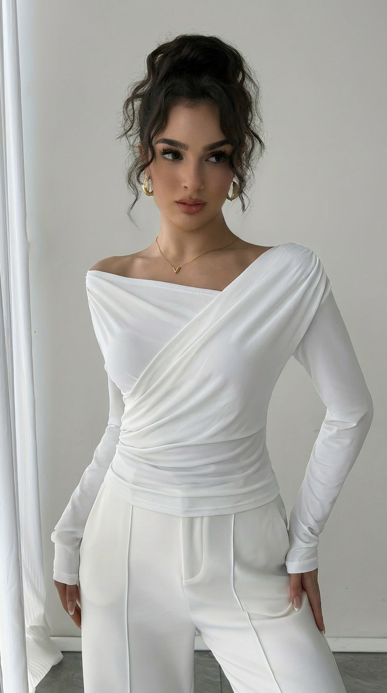 Be the first to review “Solid color fashionable off-shoulder collar slim long-sleeved versatile commuter top”
