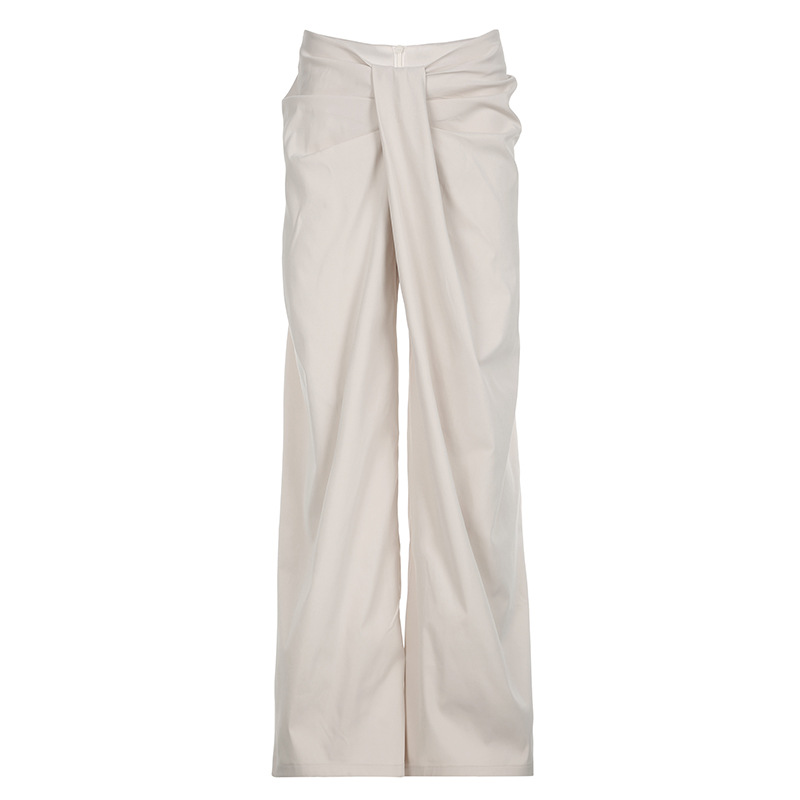 Temperament casual irregular twist low-waist solid color wide-leg pants loose drape woven pants