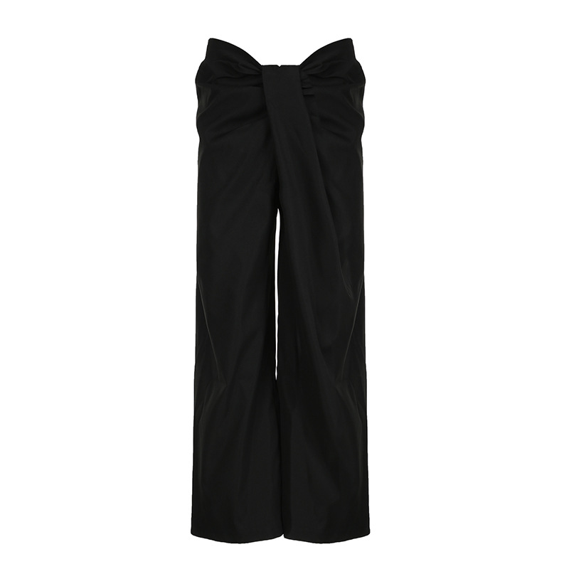 Be the first to review “Temperament casual irregular twist low-waist solid color wide-leg pants loose drape woven pants”