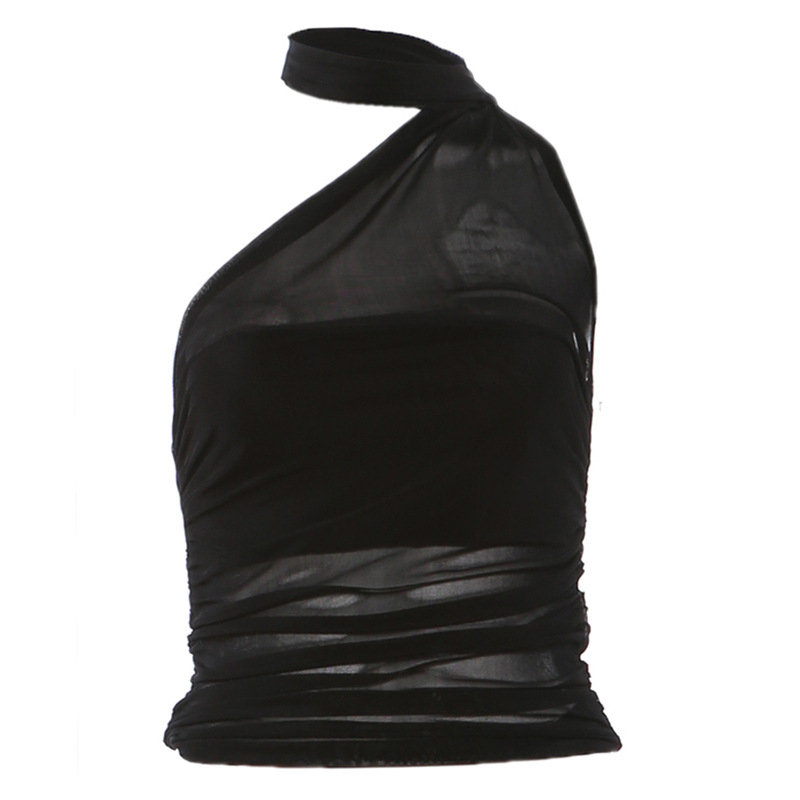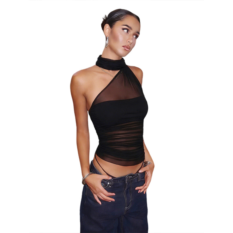 Wind women’s sexy pure lust mesh backless halterneck see-through vest for women