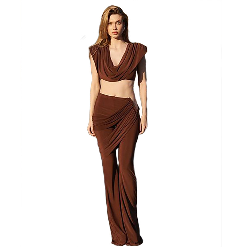 Winter women’s fashionable and personalized slim-fit pleated collar short exposed navel and hip-covering casual suit
