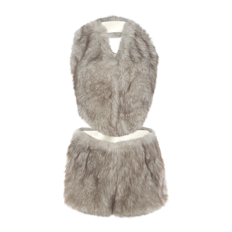 Winter women’s sexy backless lace-up plush top vest zipper shorts suit for women