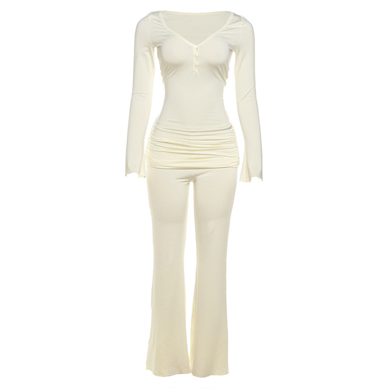 Women’s Autumn Solid Color Slim Collar Button Long Sleeve Shirt High Waist Slightly Flared Pants Suit for Women