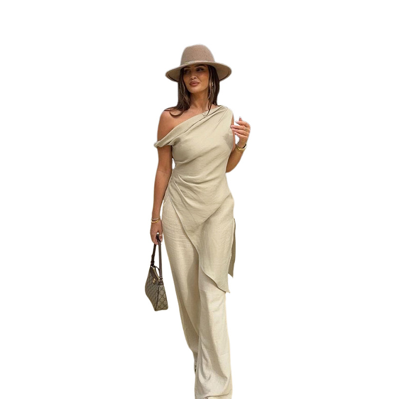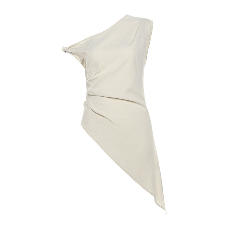 Women’s Fashion Personalized One Shoulder Solid Color Irregular Long Shirt Tops for Women