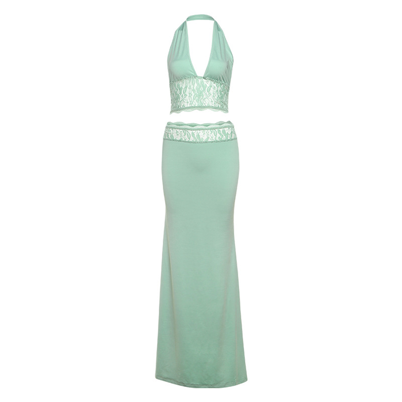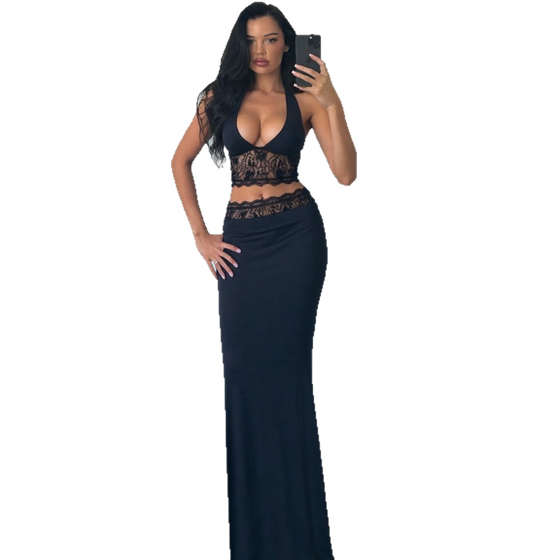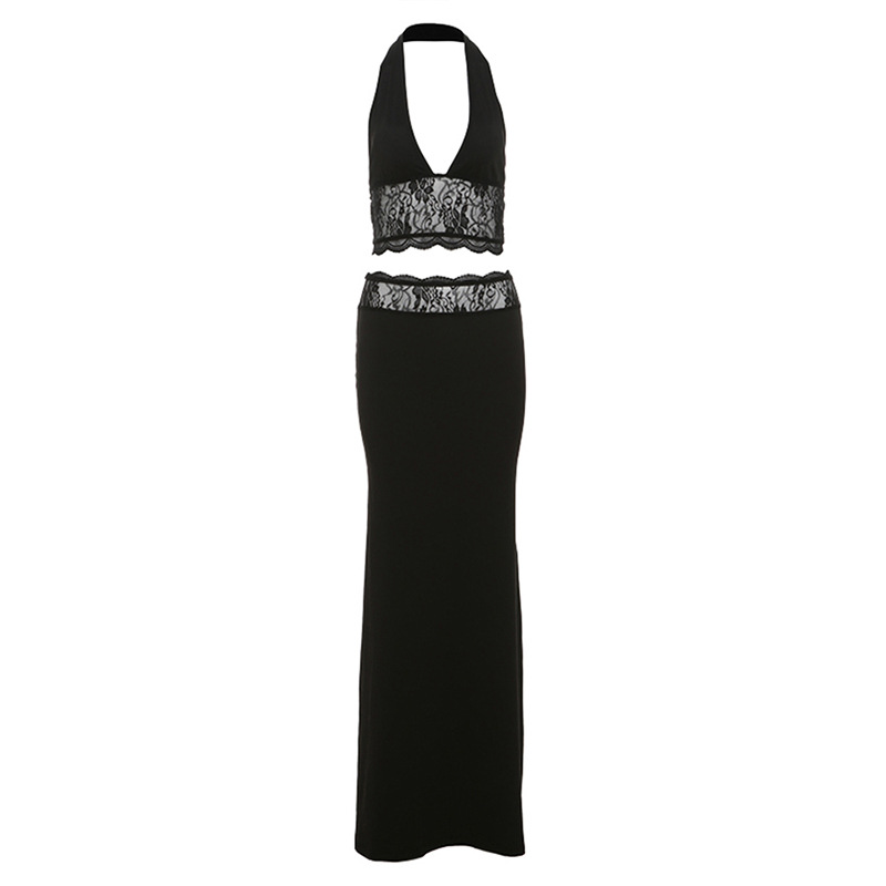 Women’s Fashion Sexy Halter Neck Backless Camisole High Waist Lace Skirt Suit