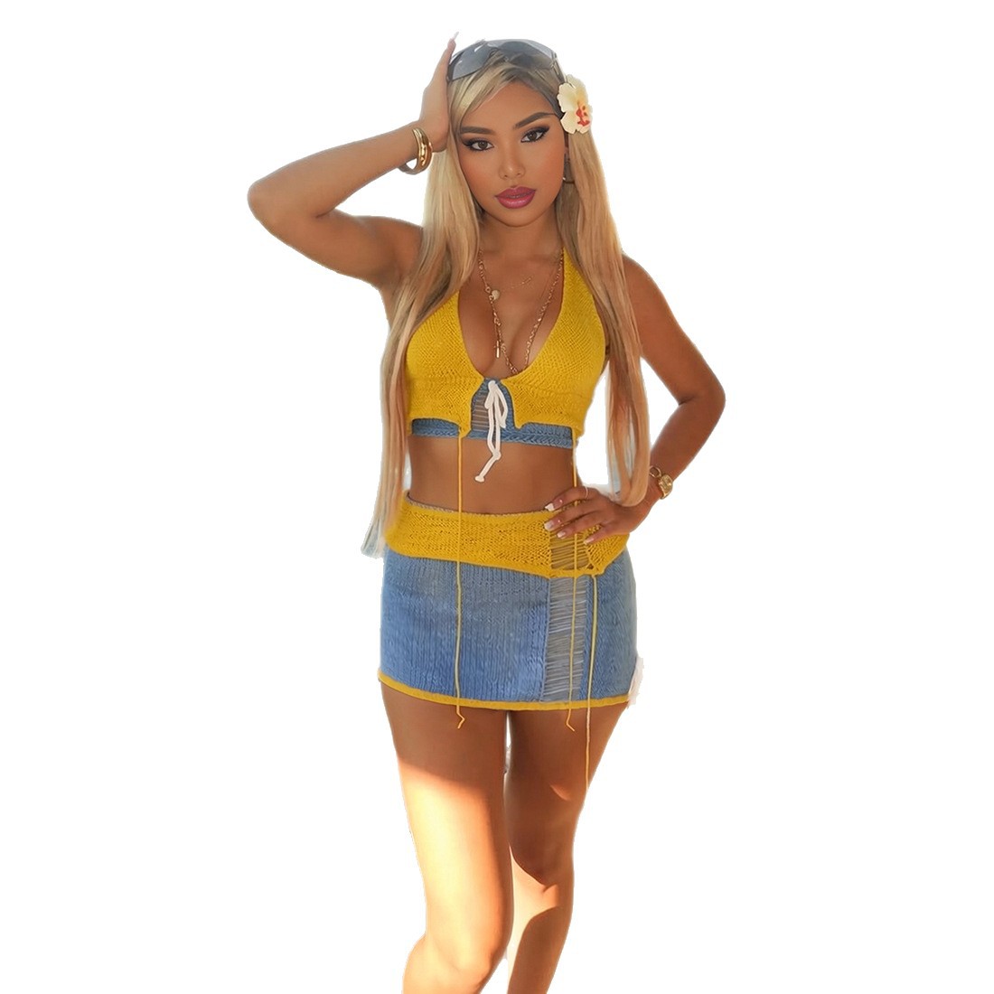 Women’s Fashionable Sexy Halter Neck Vest Top High Waist Slim Skirt
