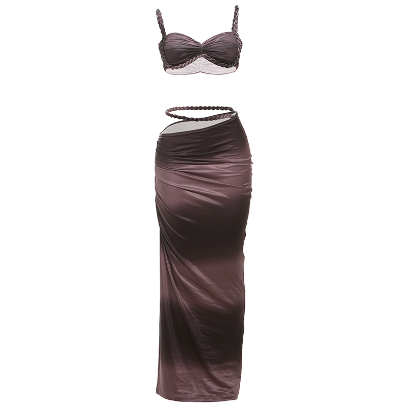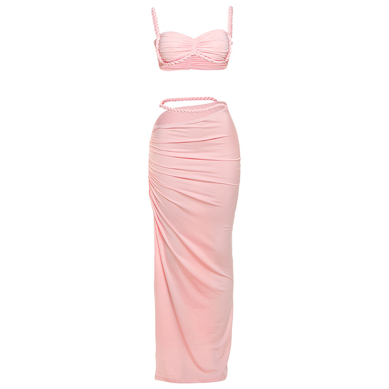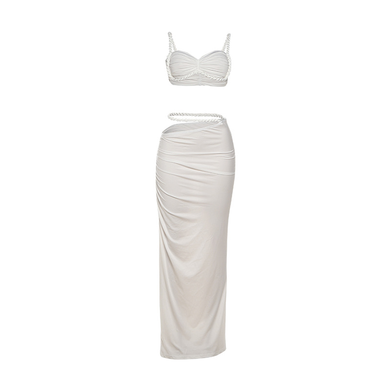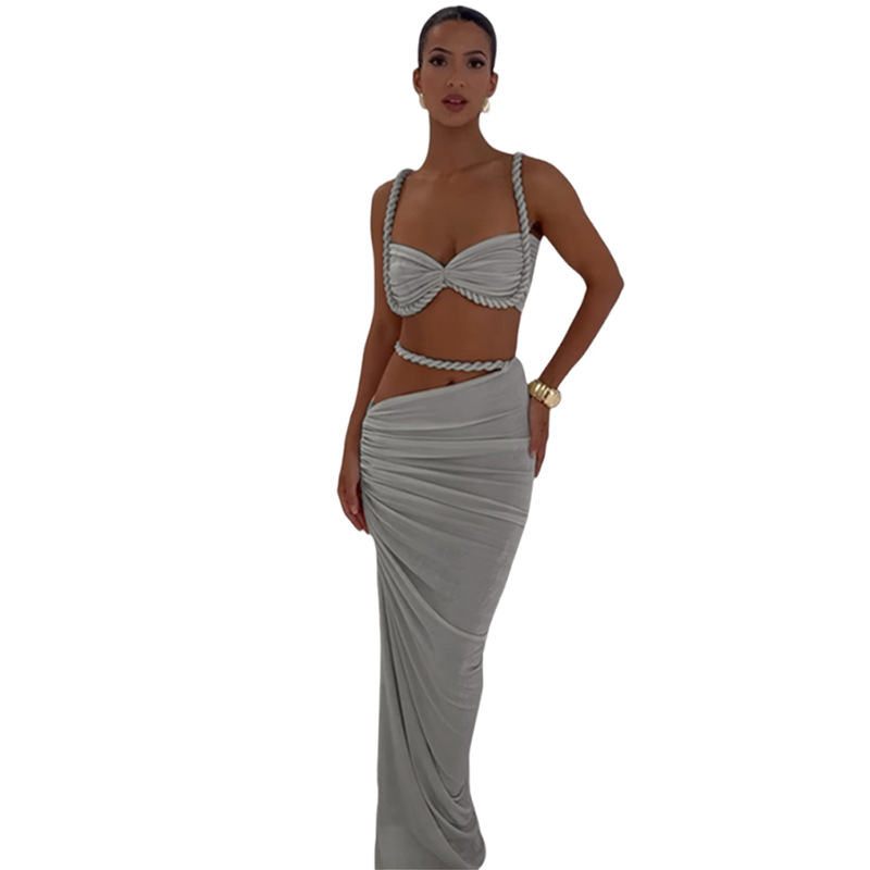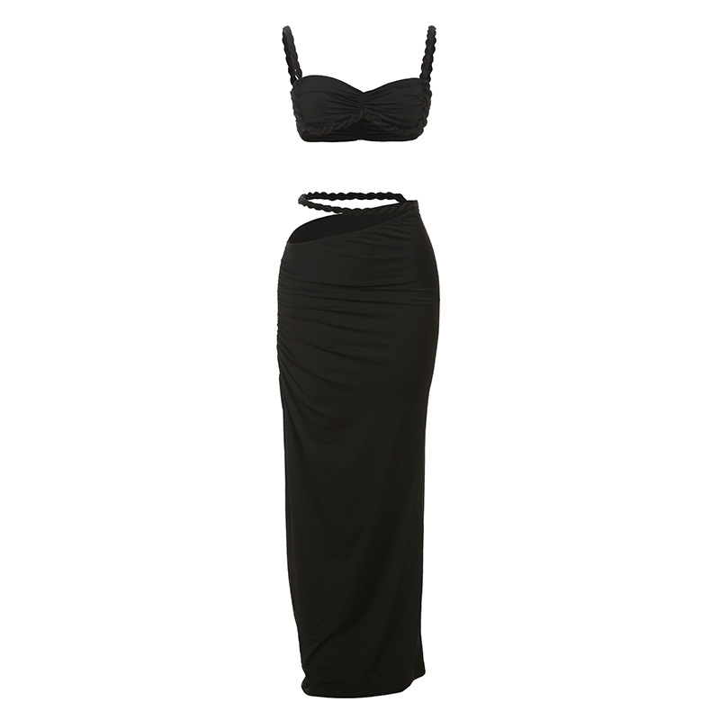Women’s Sexy Solid Color Backless Camisole Hip Cover Skirt Suit