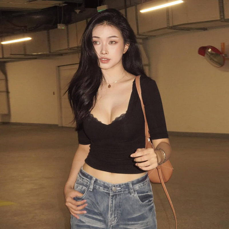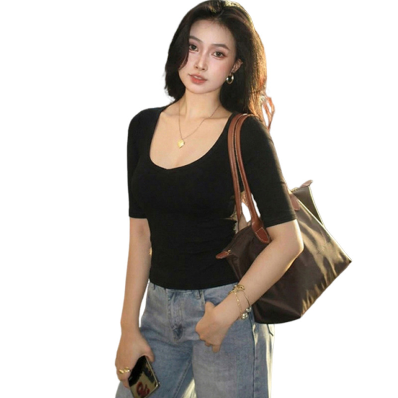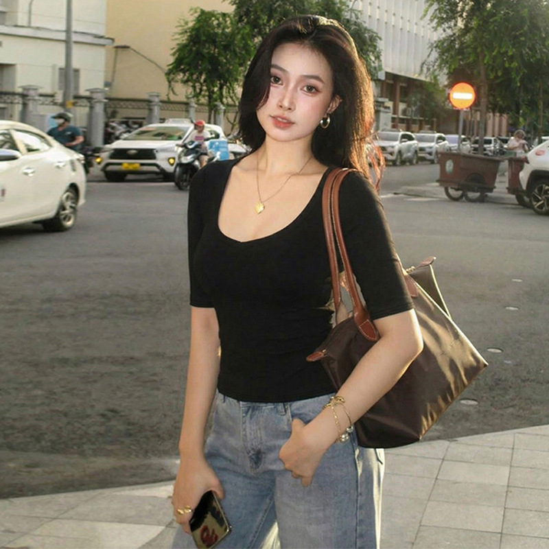 Women’s Sexy Solid Color Low Neck Slim Casual Trendy Fashion Personalized Shirt Tops