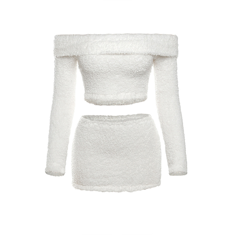 Be the first to review “Women’s style one-line collar short-haired fur shirt women’s hip-hugging skirt casual suit”